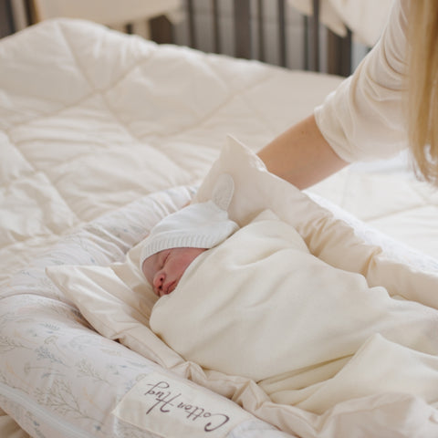 - Подложка за бебешко гнездо Cotton Hug: предлага по-тесен и уютен сън в гнездото, особено, докато бебенцето е съвсем малко. С помощта на тази възглавничка местенцето в гнездото става по-тесничко и сгушено - като в утробата на мама.