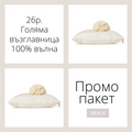• 2 броя | Голяма възглавница 100% вълна "Здрави сънища": създадена с грижа за здравето и комфорта на цялото семейство. Изработена от 100% натурална вълна, тя предлага перфектната дебелина и плътност за осигуряване на стабилност и удобство по време на сън – както за деца, така и за възрастни. Прочетете повече в описанието на самия продукт.